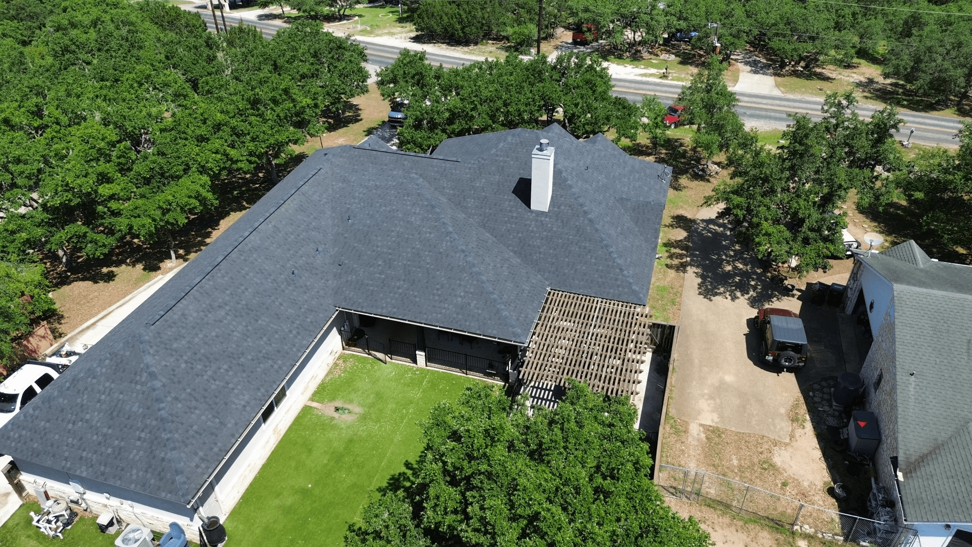Aramco Roofing & Remodeling logo with a stylized blue and black icon on the left and company name in bold white text on a black background.